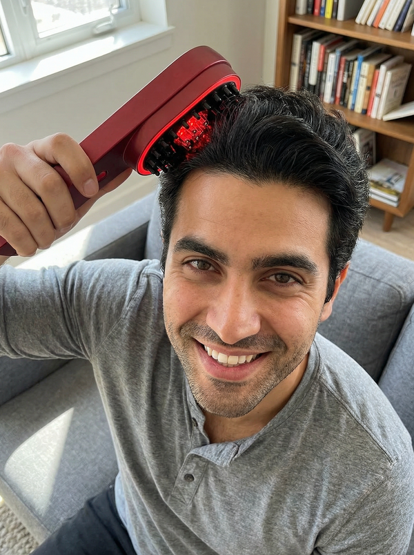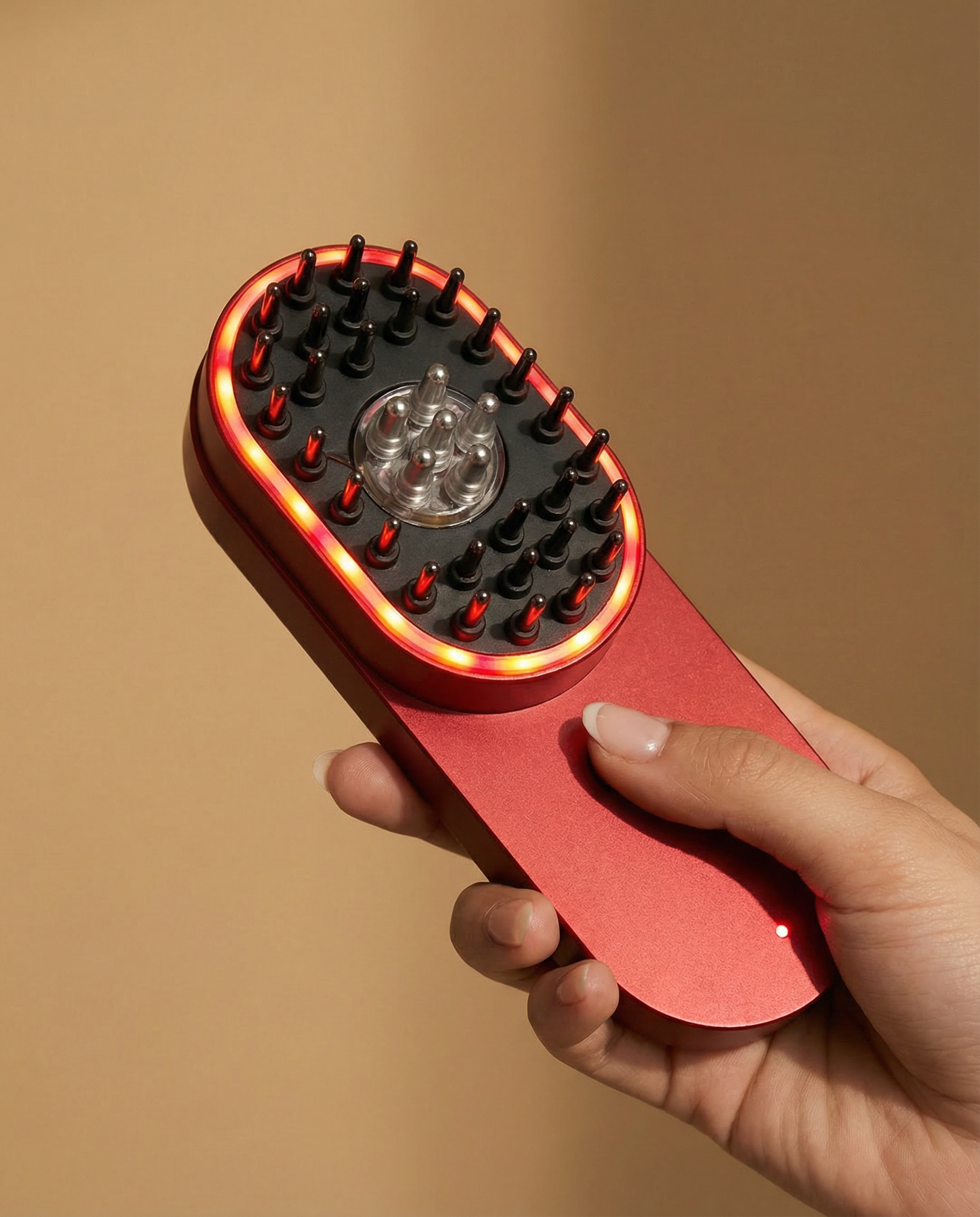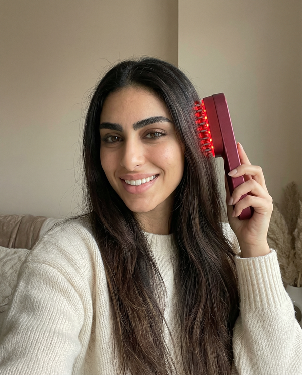 Each bristle transmits faint therapeutic heat, and subtle vibration to penetrate deep into your scalp, stimulating dormant follicles and promoting healthy blood flow.