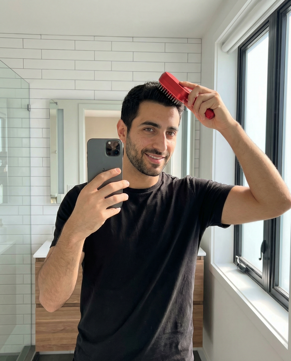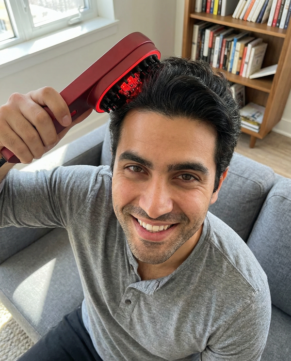 Starting at your hairline, gently glide the device across your scalp in slow, deliberate strokes. Cover all areas for even treatment.